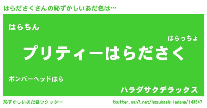 | 意味不明あだ名 | 『ペロリンはらださく』『自称はらださく』 |