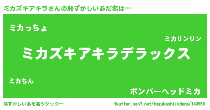 | 男性向けラノベタイトル風あだ名 | 『ミカズキアキラスレイヤー』 |