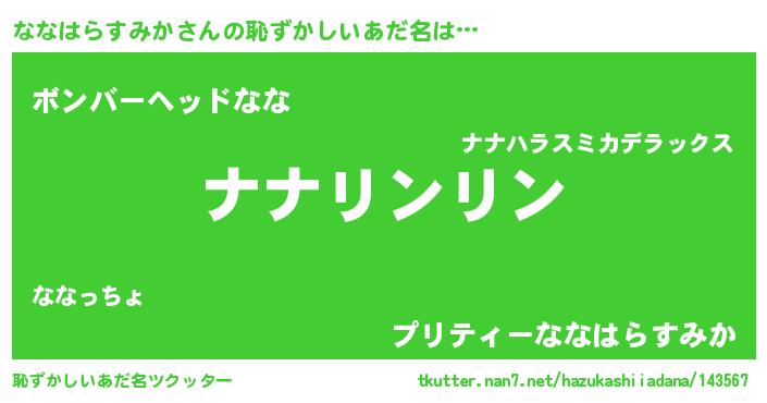 | ヘコむあだ名 | 『ななお』『ななもー』『豆乳』 |