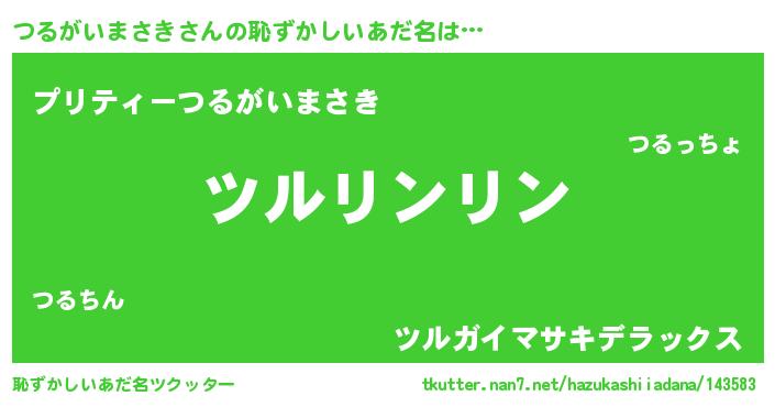| 男性向けラノベタイトル風あだ名 | 『この素晴らしい世界につるがいまさきを!』 |