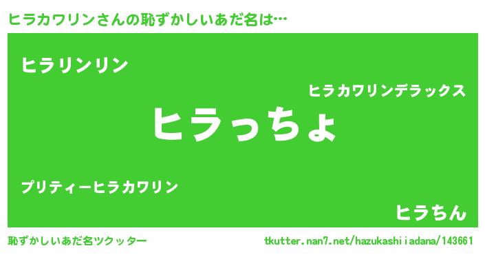 | 欧米人風あだ名 | 『ヒラカワリンクリステル』 |