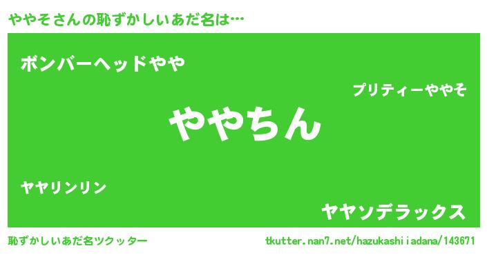 | 意味不明あだ名 | 『永久保存ややそ』『自称ややそ』 |