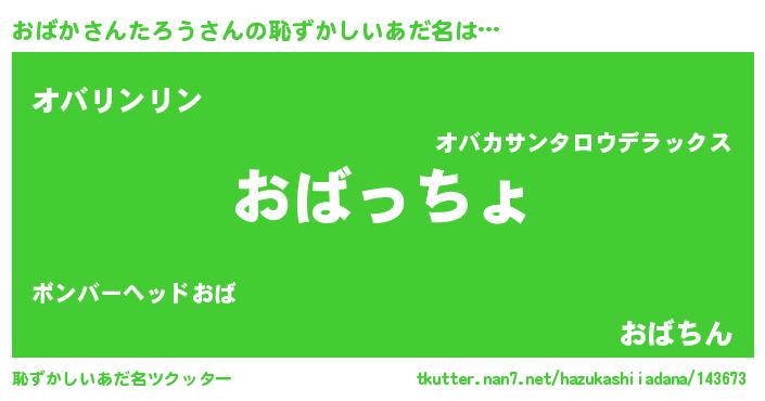 | ファンタジー風あだ名 | 『エターナルオバカサンタロウー』 |