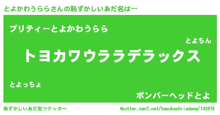 | ヘコむあだ名 | 『とよにー』『とよかわうらら(苦笑)』 |