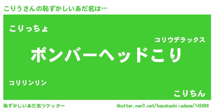 | ヘコむあだ名 | 『豆乳』『こりう(笑)』『こりぷりん』 |