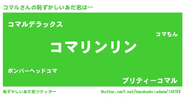 | 意味不明あだ名 | 『とにかく怪しいコマル』『自称コマル』 |