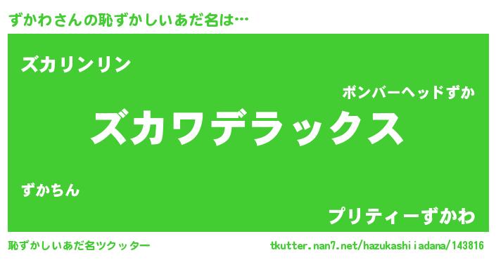 | 女子向けラノベタイトル風あだ名 | 『ずかわなんてお断りですっ。』 |