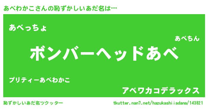 | 欧米人風あだ名 | 『アンジェラ・あべわかこ』 |