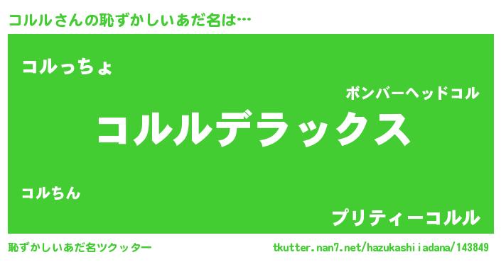 | 意味不明あだ名 | 『自称コルル』『コルルフォーエバー』 |