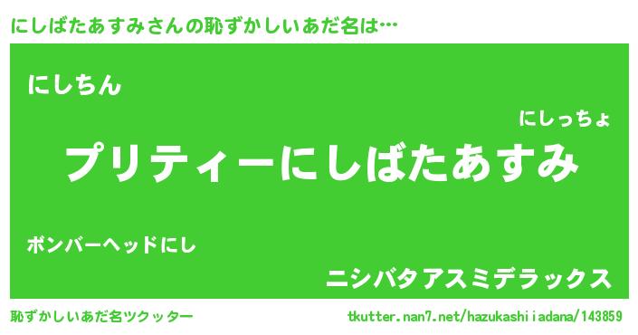 | ヘコむあだ名 | 『にしもー』『にしばたあすみ(笑)』 |