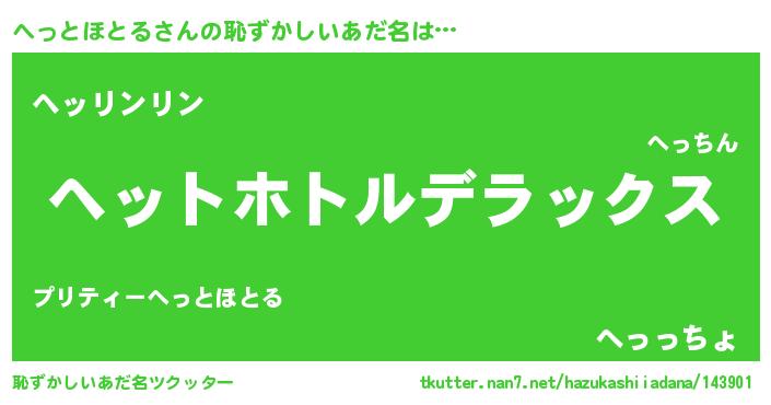 | 意味不明あだ名 | 『自称へっとほとる』 |