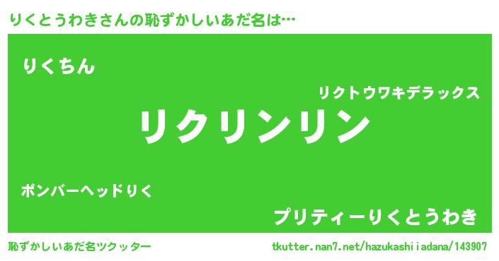 | 意味不明あだ名 | 『とにかく怪しいりくとうわき』 |