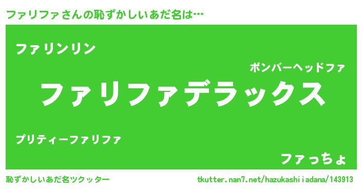 | 意味不明あだ名 | 『自称ファリファ』 |