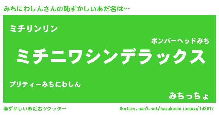 | 意味不明あだ名 | 『住所不定無職みちにわしん(4歳)』 |