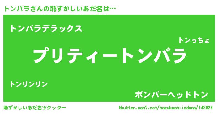 | ヒーロー風カッコイイあだ名 | 『スーパートンバラ』『究極戦士トンバラ』 |