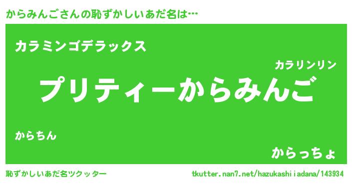 | 意味不明あだ名 | 『ペロリンからみんご』『自称からみんご』 |