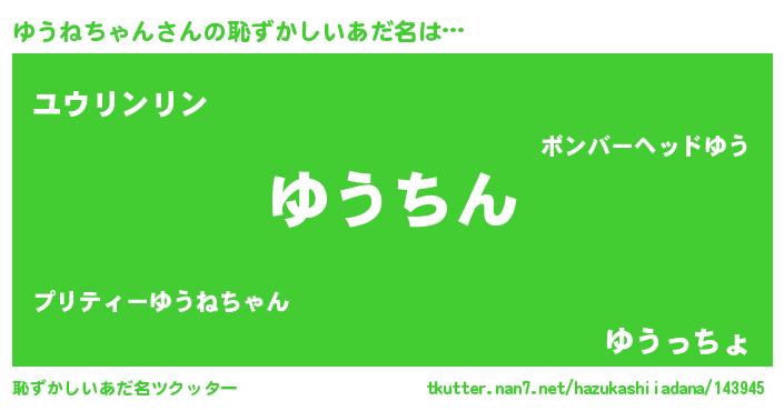 | ヘコむあだ名 | 『ゆうねちゃん(苦笑)』『ゆうっちょ』 |