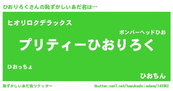 | ヒーロー風カッコイイあだ名 | 『スーパーヒオリロク』『仮面ヒオダー』 |