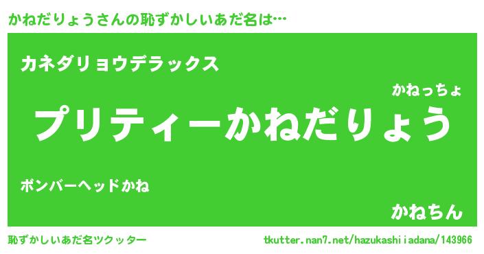 | ヒーロー風カッコイイあだ名 | 『スーパーカネダリョウ』『仮面カネダー』 |