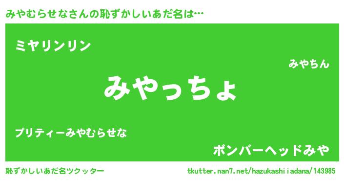 | 意味不明あだ名 | 『みやむらせなフォーエバー』 |