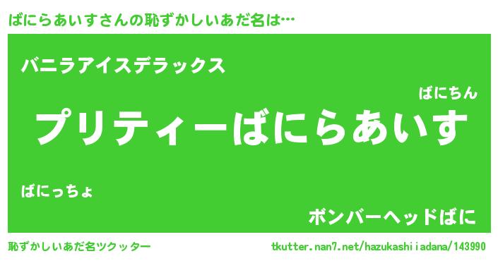 | ヘコむあだ名 | 『ばにもー』『ばにらあいす(爆)』 |