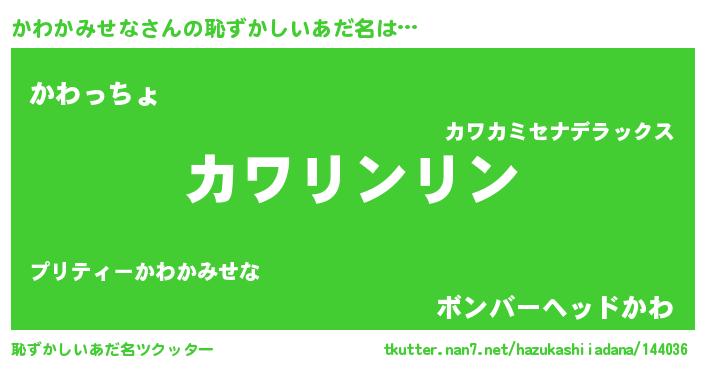 | 意味不明あだ名 | 『とにかく怪しいかわかみせな』 |