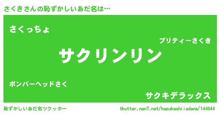 | ヘコむあだ名 | 『さくお』『つくし』『さくふぇ~』 |