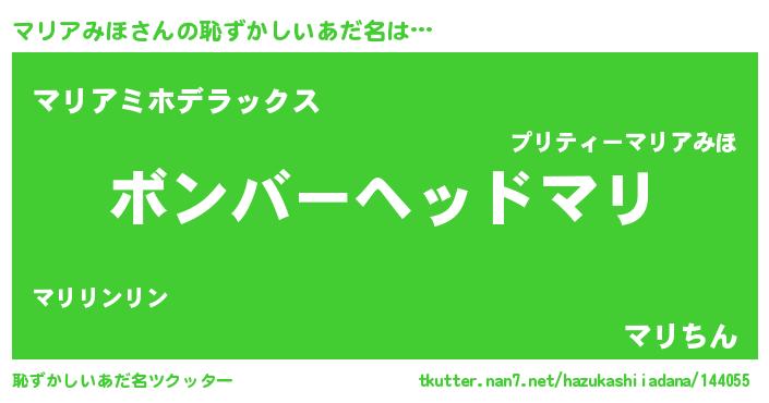 | ヘコむあだ名 | 『マリアみほ(爆)』『マリもー』 |
