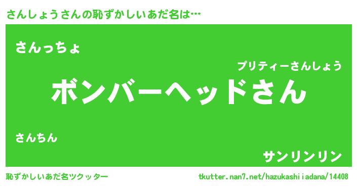 | 男性向けラノベタイトル風あだ名 | 『サンショウスレイヤー』 |