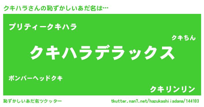 | 女子向けラノベタイトル風あだ名 | 『クキハラなんてお断りですっ。』 |
