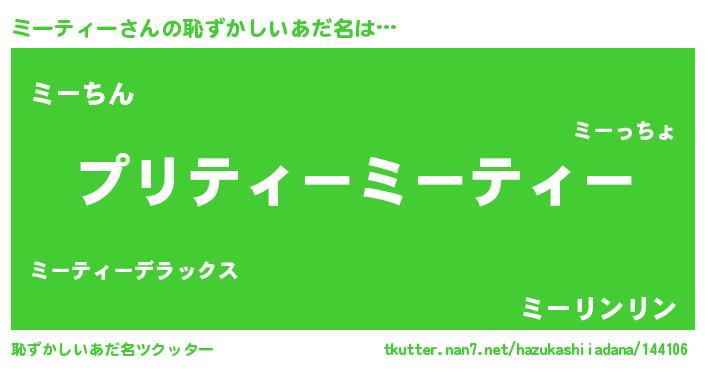 | ヘコむあだ名 | 『ミーもー』『ミーティー(笑)』 |