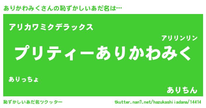 | 欧米人風あだ名 | 『トリンドルありかわみく』 |
