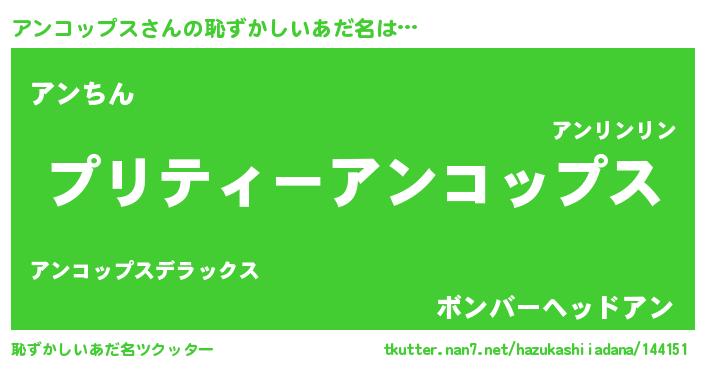 | ヘコむあだ名 | 『アンふぇ~』『アンコップス(爆)』 |