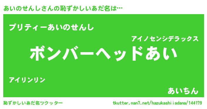 | ヘコむあだ名 | 『あいふぇ~』『あいのせんし(小並感)』 |