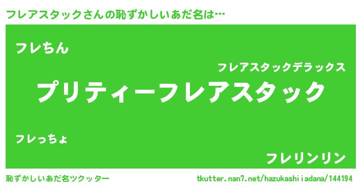 | ヘコむあだ名 | 『フレにゅー』『フレアスタック(遠い目)』 |
