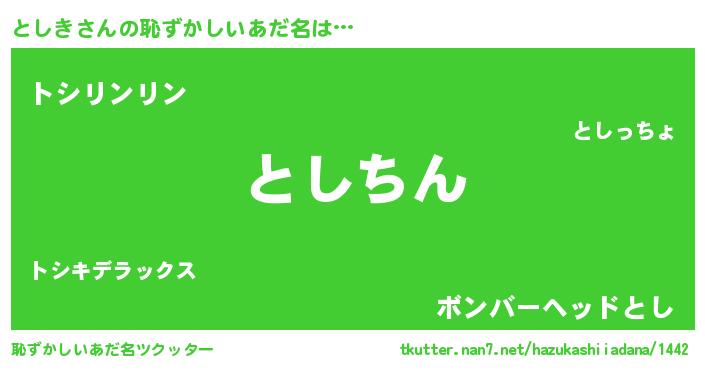 | ヘコむあだ名 | 『としき(笑)』『とし太郎』『豆乳』 |