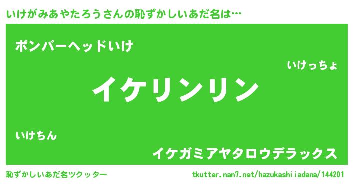 | 意味不明あだ名 | 『とにかく怪しいいけがみあやたろう』 |