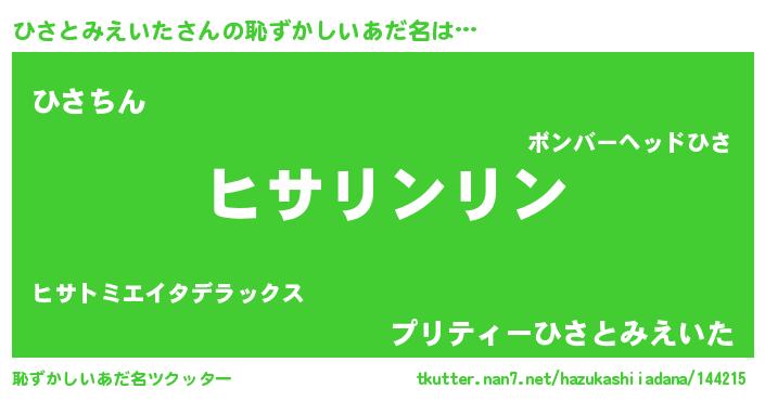 | 欧米人風あだ名 | 『ウサインひさとみえいた』 |