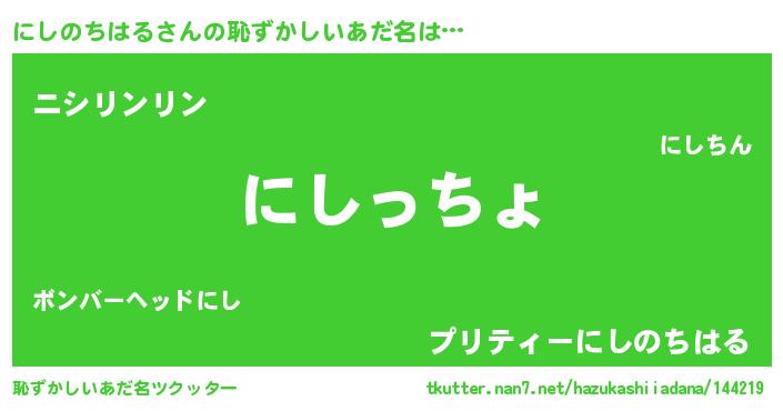 | ポケモン風あだ名 | 『ニシノダネ』『ヒニシノチハル』 |