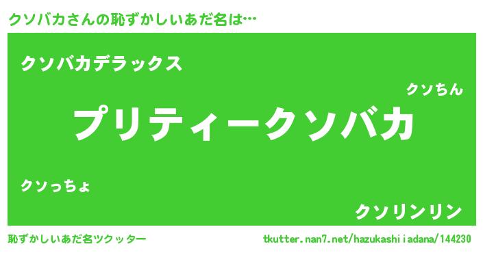 | ヘコむあだ名 | 『クソふぇ~』『クソを』『なまこ酢』 |