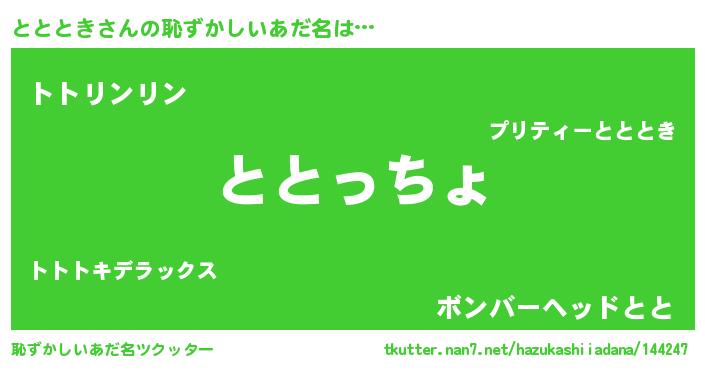 | 意味不明あだ名 | 『ととときフォーエバー』『自称とととき』 |