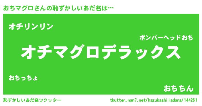 | 意味不明あだ名 | 『自称おちマグロ』『永久保存おちマグロ』 |
