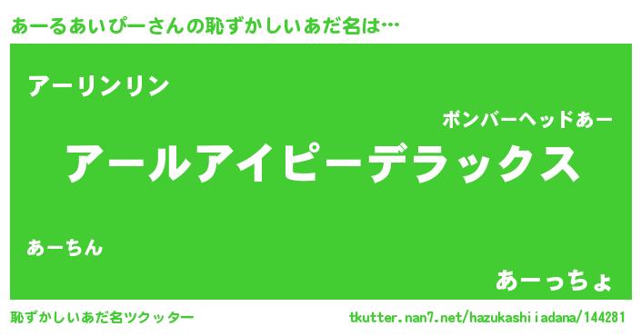 | 意味不明あだ名 | 『自称あーるあいぴー』 |