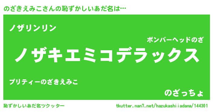 | ヘコむあだ名 | 『のざっちょ』『豆乳』『のざにー』 |