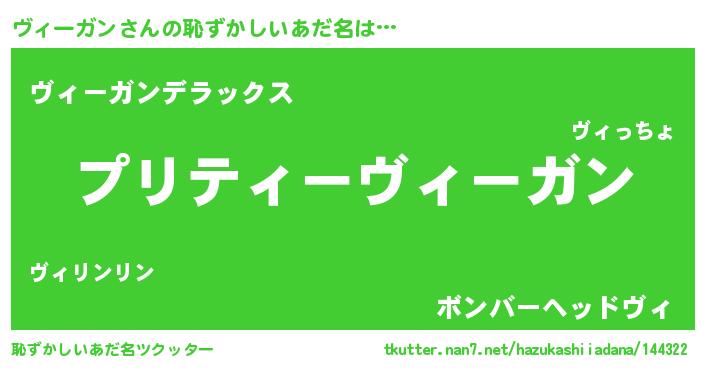 | ヒーロー風カッコイイあだ名 | 『スーパーヴィーガン』『仮面ヴィダー』 |