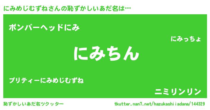 | ヘコむあだ名 | 『にみめじむずね(笑)』『にみを』 |