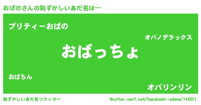 | 胡散臭い通販商品みたいなあだ名 | 『幸せが訪れる高級そうな壺…その名も「おばの」』 |