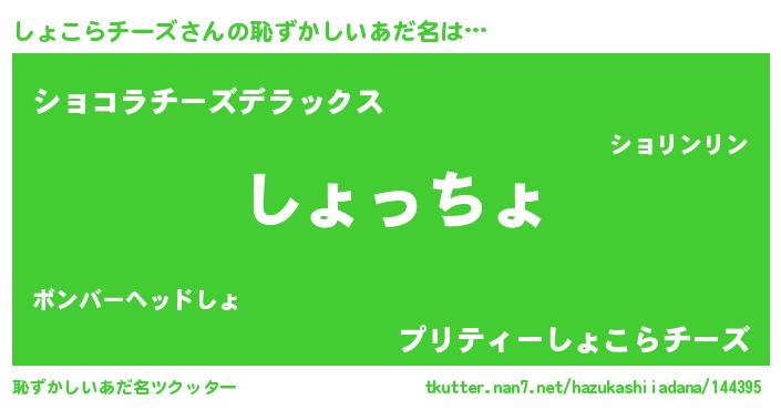 | 胡散臭い通販商品みたいなあだ名 | 『運命の人と巡り会える高級そうな壺…その名も「しょこらチーズ」』 |
