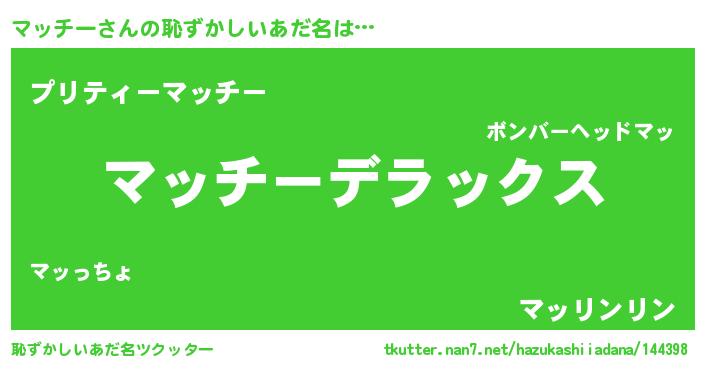 | 意味不明あだ名 | 『自称マッチー』『ペロリンマッチー』 |