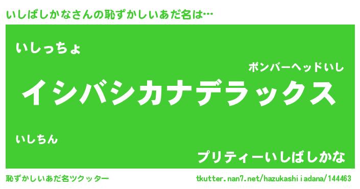 | 男性向けラノベタイトル風あだ名 | 『Re:いしばしかなから始める異世界生活』 |